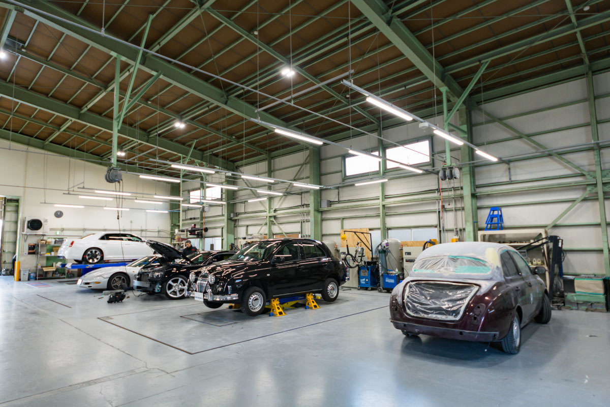 当社関東エリア一円の鈑金・塗装工場として新設され、最新塗装ブース、アライメント調整機なども揃え軽微な修復から大規模修復にまで対応する大型ファクトリー。