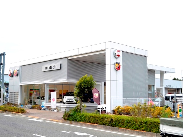 国立市、中央道・国立府中インターより至近、昼夜を通して車両を際立たせるローンチグラスを採用したショールーム。