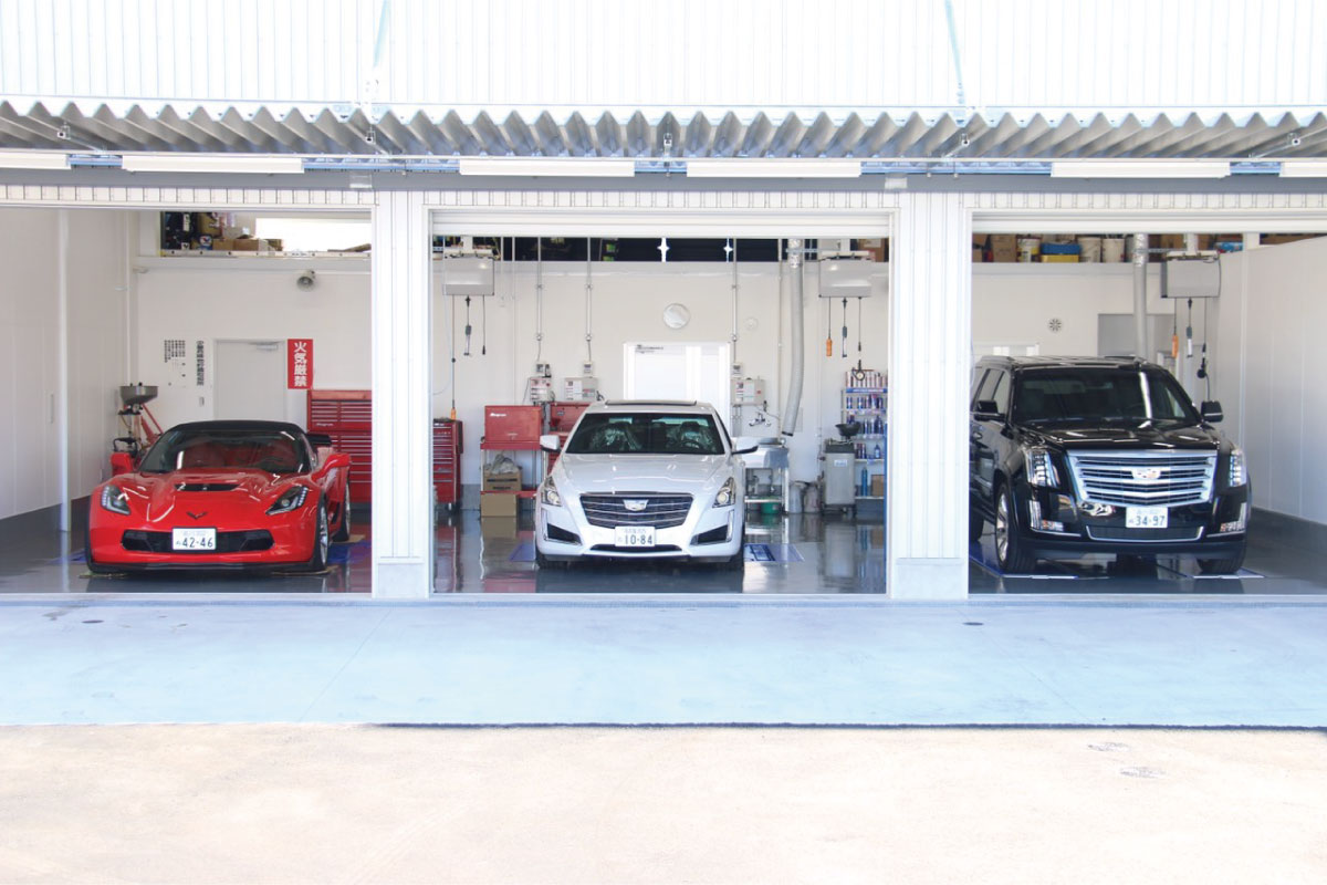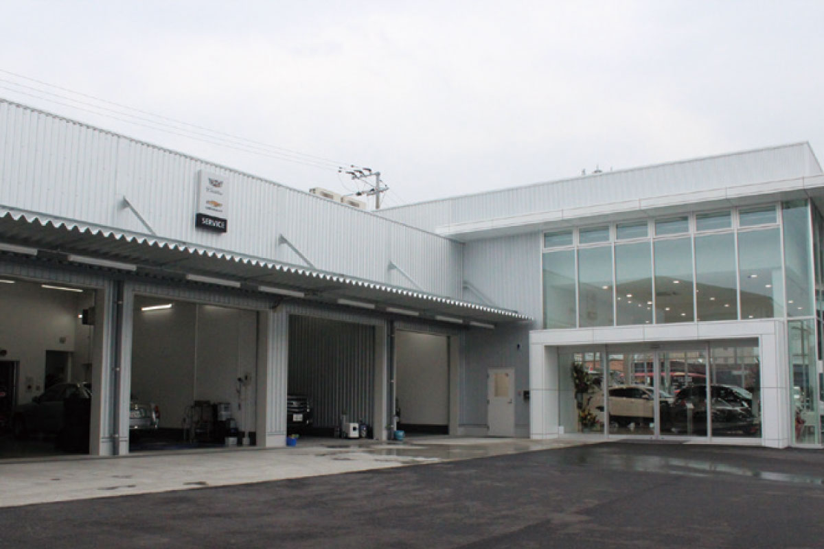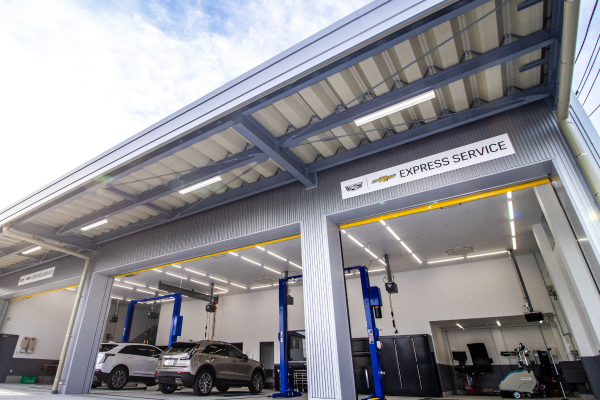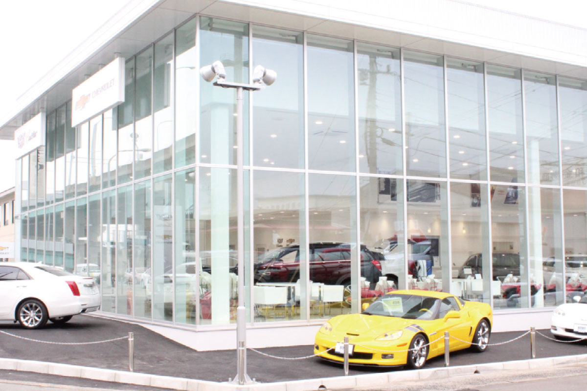 グローバルキャデラックの新CIを国内で初めて導入した新店舗を隣接地に移転しリニューアルオープン。店舗面積を旧店舗の3倍に拡充し、4ベイリフト+検査ラインを完備するサービス工場も新設。