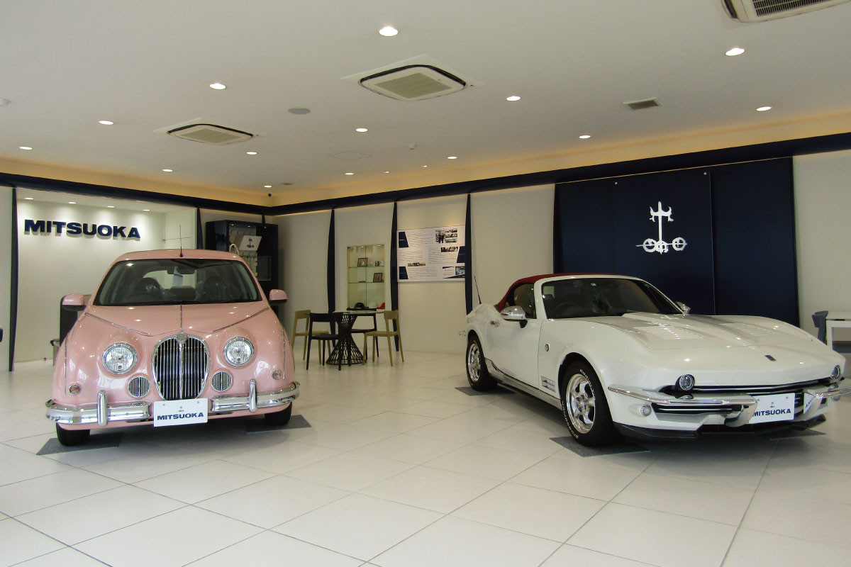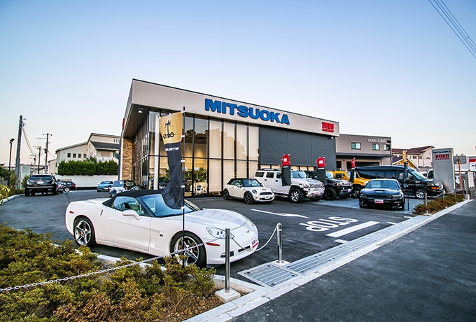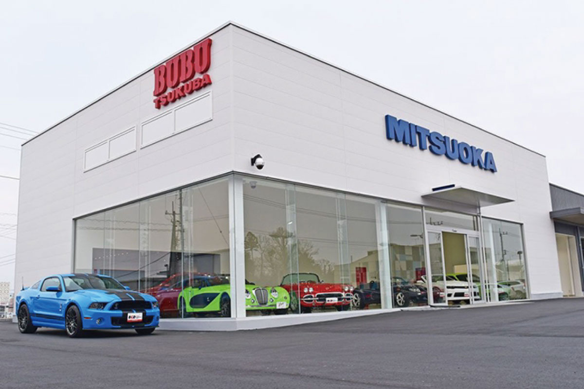 茨城県つくば市にMITSUOKAオリジナルカーをはじめ、アメリカ車、ヨーロッパ車を取り扱う店舗として新設。4ベイサービスリフトを備えるサービス工場も併設。