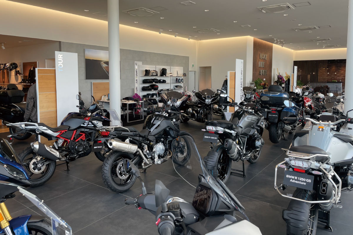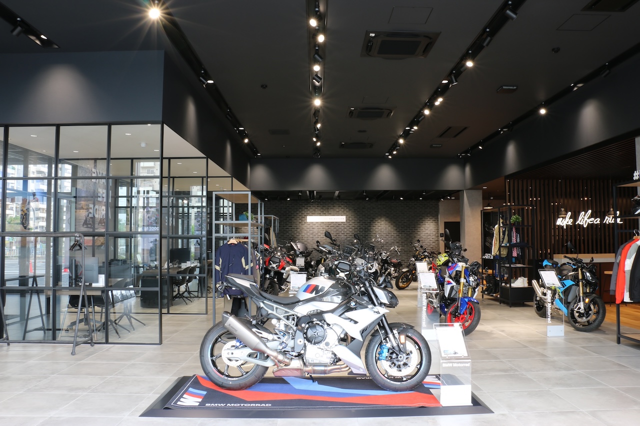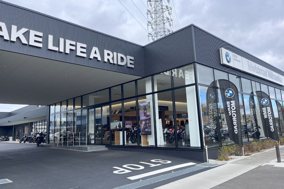 BMW Motorradが提唱するライフスタイル「Make Life A Ride」を具現化する新CIを取り入れた延べ床面積1,158.5㎡を誇る国内最大級の店舗として新規オープン。