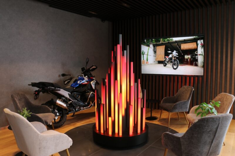本店舗は、大阪中央環状第2号線沿いの利便性に優れた立地に位置し、敷地面積約2,255㎡、2階建て延床面積約1,088㎡と国内最大級の規模でBMW Motorrad最新のCIに基づいた設計を採用し、西日本で初めて「ファイヤープレイス(焚火)」コンセプトを導入。ブランドの世界観を体感できる空間として、来場者の交流や滞在価値の向上を目指します。