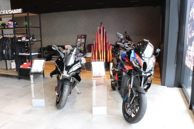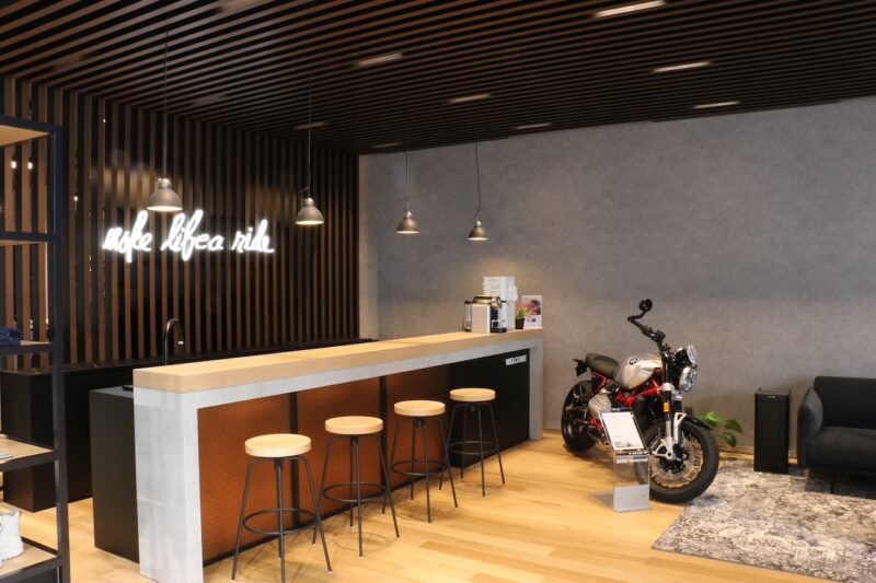 約320㎡の広々としたショールームには、BMW Motorradの最新モデルを中心に新車約12台を展示。認定中古車、モーターサイクルエクイップメントや最新のアパレルも展開し、豊富な製品ラインアップをご用意します。併設のサービス工場には4つの整備ベイ、車検ライン、パーツ庫を備え、車検・点検・整備まで幅広く対応可能な体制を整えます。販売・アフターサービス・体験価値を一体とした拠点として、地域の皆様に信頼と満足をお届けしてまいります。