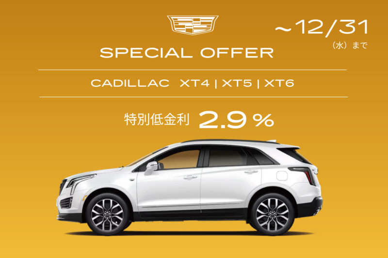 2025年12月31日(水)まで、対象車種を新車でご成約かつご登録いただいたお客様に限り、XT4、XT5、XT6を2.9%の特別低金利でご購入いただけます。
