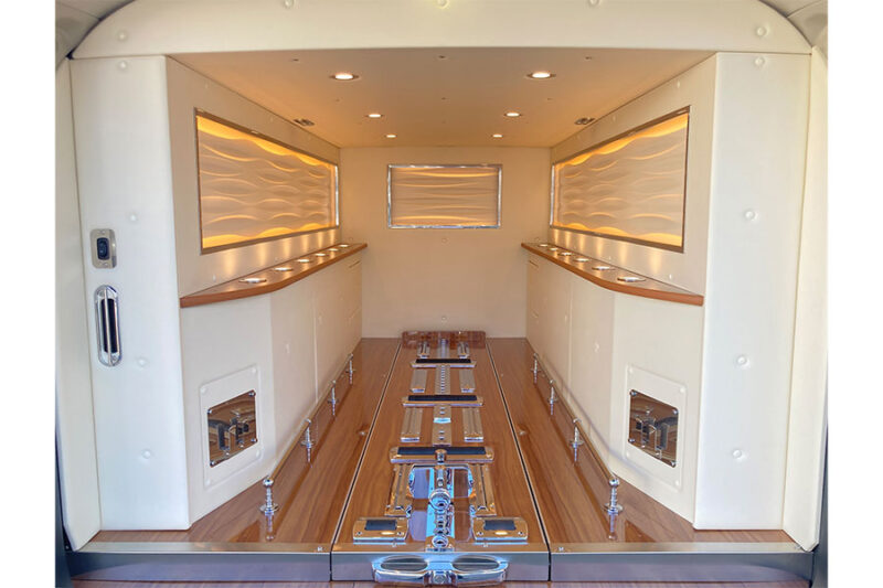 - 装備:プレミアムスペース、ストレッチャー兼用引き出し式棺台、棺台横・下収納、スライドドア部収納